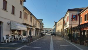 Un venticello abbastanza gelido ci ha fatto compagnia, mentre il sole spingeva da parte le nuvole diffuse per far spazio alla luce e a un minimo di tepore. Così nel percorrere le vie ancora silenziose di questo paese mi sono venuti in mente i versi con cui Giacomo Noventa, poeta nato proprio in questo luogo, ha espresso tutto il suo amore: “Un giorno o l’altro mi tornarò, no’ vùi tra zénte strània morir, un giorno o l’altro mi tornarò nel me paese” (Un giorno o l’altro io tornerò, non voglio morire tra gente straniera, un giorno o l’altro io tornerò nel mio paese.)